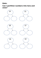Here are some pictorial worksheets focusing on tens and ones. Students can learn the basic place value concept of tens and ones by completing a simple cut and paste activity. Place value is key to understanding and progressing with number skills and learning about the number system. Use a ruler to match the representations that show the same number. Firstly there are some ten frames to enable the children to practise counting in jumps of ten.